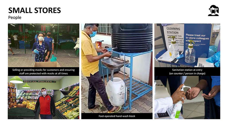During the COVID-19 lockdown, there was a sudden behaviour change that led to an increase in online purchases which negatively impacted the livelihood of informal micro-retailers. Surveys and interviews with shoppers who changed their behavior indicated that this was influenced by their concern for personal safety and sanitation. In an effort to aid informal micro-retailers to regain customers, training and material was provided with a small budget of $2 per micro-retailer. This included drawing physical distancing boxes, setting up mobile payment accounts, wearing masks, displaying price and safety guidelines to customers to improve perception of safety precautions taken by the retailer. Revenue improved by 60% in the week after implementation compared to the previous week.​